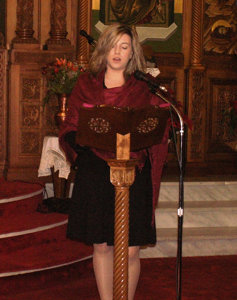 Έτσι, λοιπόν, κάλεσε στο βήμα αρχικά την θεολόγο, κατηχήτρια και αρχηγό κατασκηνωτικής περιόδου των κοριτσιών Ελβίνα Γρηγόρη, η οποία ανέπτυξε θέμα επίκαιρο με τίτλο: « Το μήνυμα των Χριστουγέννων», προτρέποντας όλους να βιώσουν το νόημα των εορτών και ευχήθηκε η Γέννηση του Κυρίου μας να αναγεννήσει τον σύγχρονο άνθρωπο της καταναλωτικής κοινωνίας μας.